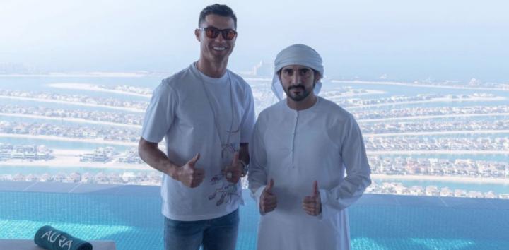 而在阿联酋,头巾的佩戴方式则要丰富许多。人们偏爱纯白+黑色头巾圈的方式,或者直接将白色头巾盘成一个小帽子戴在头顶。C罗的好朋友、迪拜王子哈曼丹通常会选择不带头巾,或者这样佩戴他的头巾: