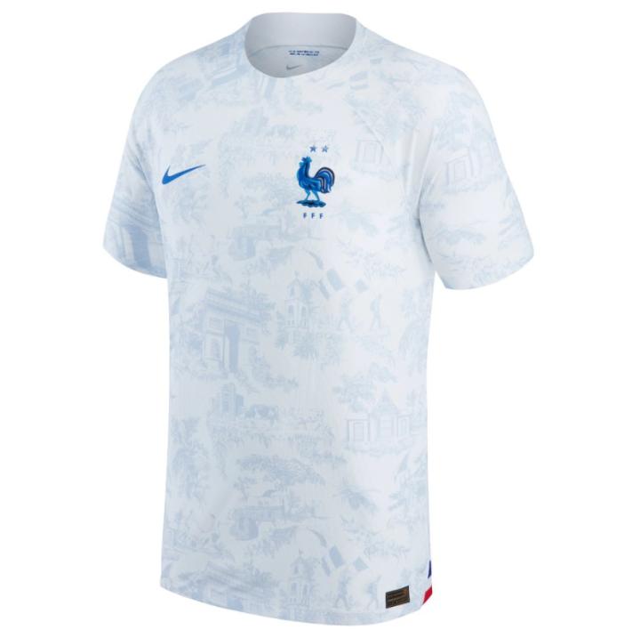 相比起过于简洁的主场球衣,法国队今年的白色客场球衣无疑更加吸引眼球。遍布全身的暗纹描绘了包含法国大革命、凯旋门等一个个颇具历史文化意义的建筑与场景,可以说是一款用心之作。