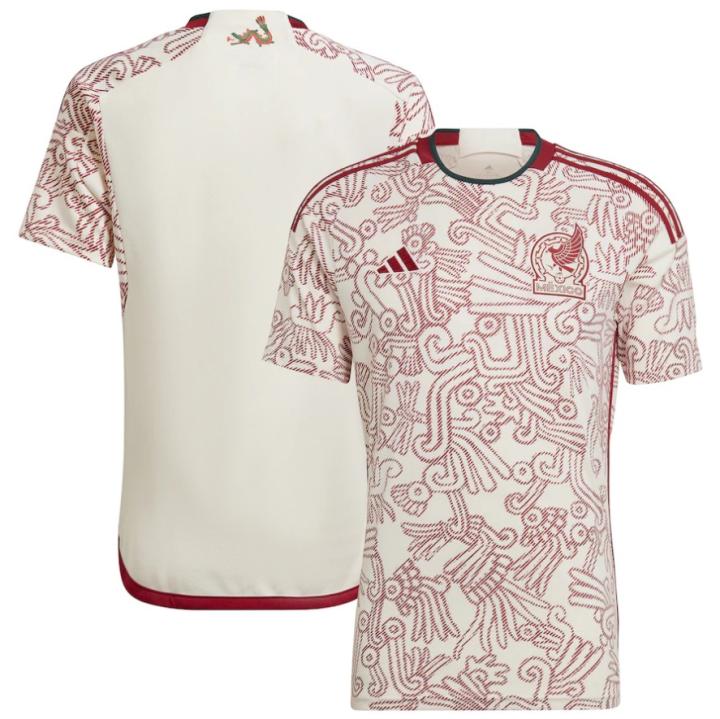 本次评选的前两位由Adidas旗下的球衣包揽,其中墨西哥这件白+红配色的客场球衣自发布伊始就赢得了很高的关注度,全身遍布的暗红色花纹灵感来自于中北美洲远古神祇——“羽蛇神”魁札尔科亚特尔的图腾纹样。对于不喜欢太多鲜艳花纹的人来说,这样的设计可能显得有些杂乱无章,但喜欢它的人也是喜欢得不得了。