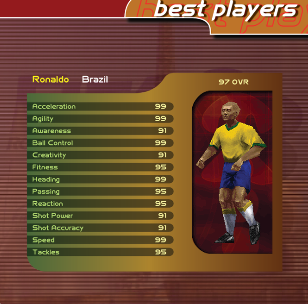 本作也是第二款在第五代视频游戏机上的3D游戏。许多不同国家的球员出现在封面上,包括贝克汉姆、劳尔、马尔蒂尼。
