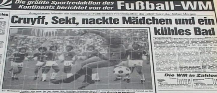 1974世界杯决赛前,德国《图片报》突然刊登了一则名为《克鲁伊夫,香槟,裸体女郎》的报道,引发轩然大波。