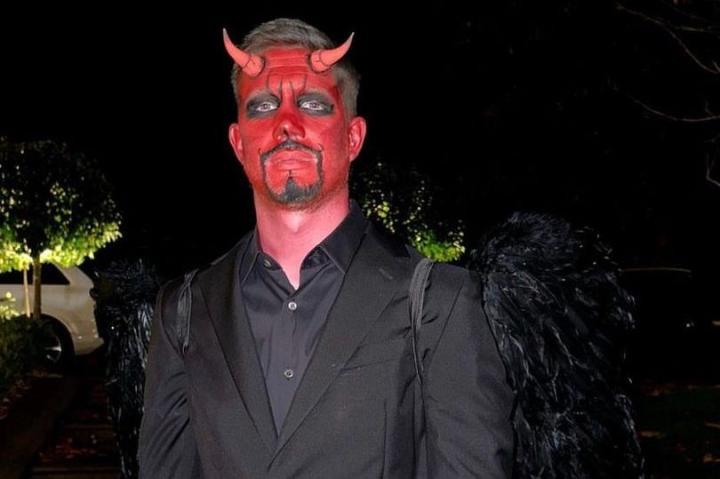 德布劳内化身“红魔”——他把自己的脸涂上了红色的颜料,并戴上了恶魔的角,身披一席黑色西装。