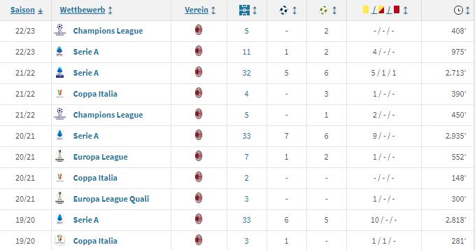 特奥在米兰的3年多为球队出场了138次,贡献了21个进球和27次助攻,成为了米兰在复兴道路上的绝对核心之一。