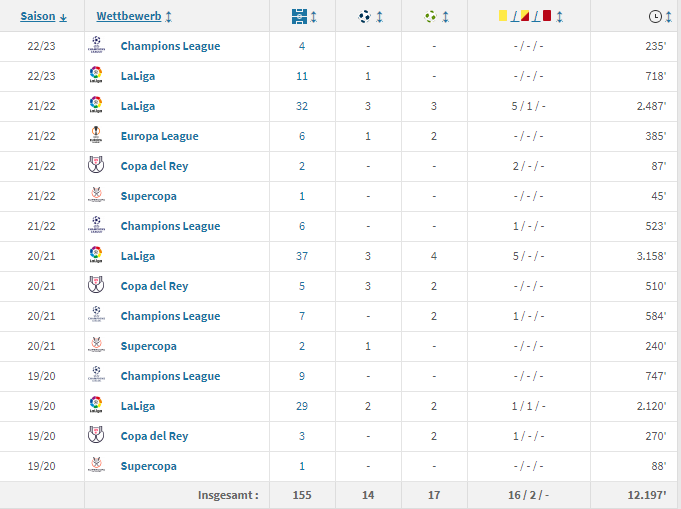 今年夏窗德容曾有机会与滕哈格在曼联师徒重逢,但巴萨由于转会费方面未达预期,并未放人。德容目前为巴萨各项赛事出场155次,有14个进球和17次助攻。