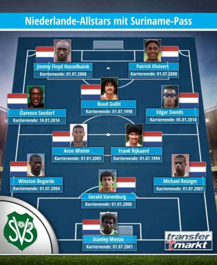 近日,德转盘点了苏里南裔的历史最佳阵容,阵容里的荷兰球星都在球员生涯中取得了丰功伟绩,具体是哪些相信不必多提大家也都心知肚明了。