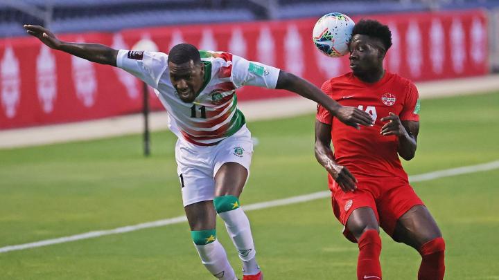 (图)苏里南前锋贝克尔和阿方索·戴维斯在世预赛上同场竞技