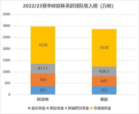 2022/23赛季曼联&阿森纳欧联小组赛收入榜