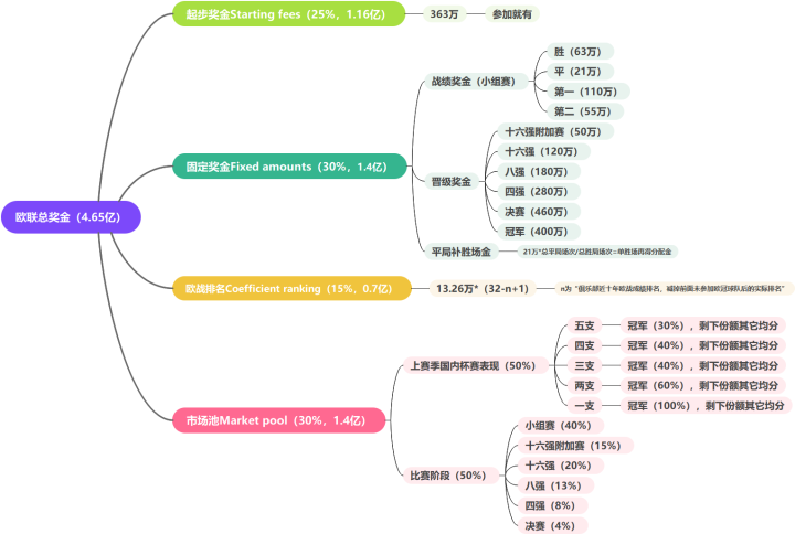 另外欧联为比赛各个阶段也划分了明确的份额比例,而欧冠没有。