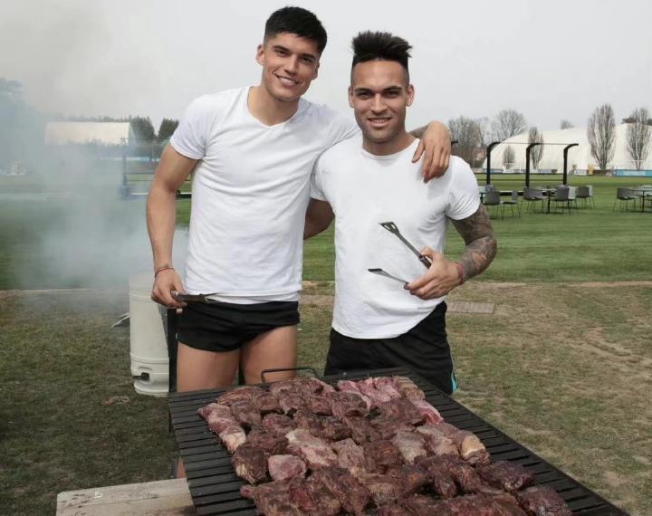 (上赛季末备战联赛的关键时刻,劳塔罗-马丁内斯和华金-科雷亚为队友们准备烤肉)