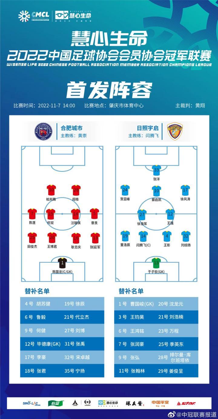 本场比赛合肥城市排出的4-4-2阵型,门将是陈国龙,四个后卫是田俊杰、王博君、耿志庆和张延军,中场为陈唐、何双、汪瑞祺和章艮,顶在前锋位置的是阎格和柏天赐。