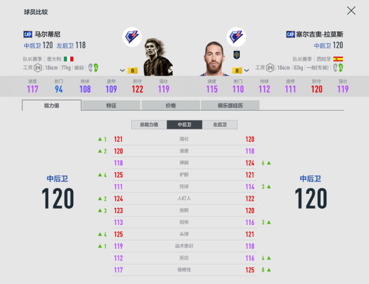 中卫位置: 范戴克、费迪南德、马尔蒂尼、拉莫斯