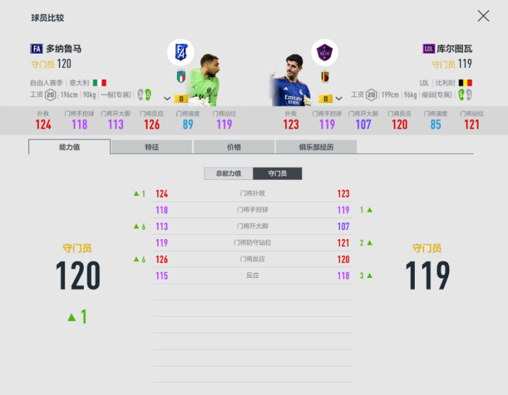 而同样有着大模型的多纳鲁马稳定性不如库尔图瓦,但也足够成为玩家们的二号门将,状态出色时神扑也很多。