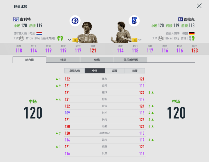 这里推荐的4名中场都是大家耳熟能详的“神兽级别”球星。当然,由于非巅峰赛季卡的原因,他们的价格都在8兆-9兆之间,可以说是所有位置中最具有性价比的了。相比较来说,古利特和巴拉克类型偏进攻,在场上站位比较靠前,喜欢参与进攻;维埃拉与里杰卡尔德偏防守,基本上不会主动跑到前场。