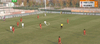 第22分钟,阿巴别克热任意球直接破门,新疆天山雪豹1-0青岛青春岛。