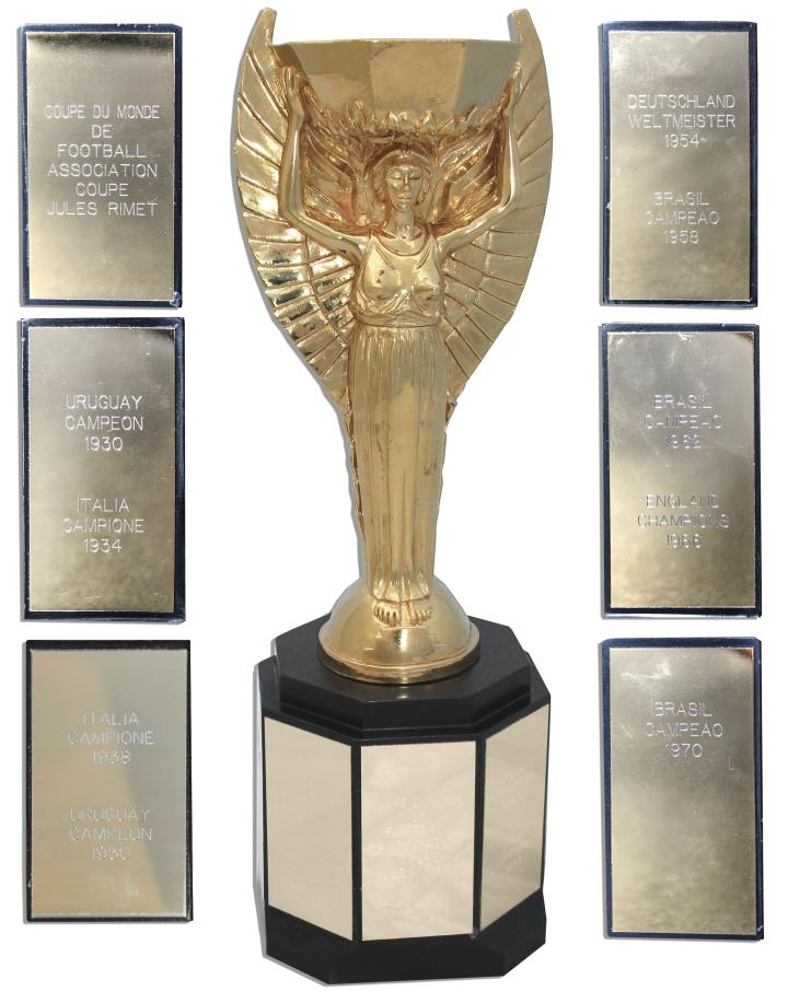 今天看到个新闻,说明天国内某平台要在网上公开拍卖一座国际足联授权的大力神杯复刻品,这座奖杯最早是国际足联在1998年授予一家英国转播公司的,此后收藏在意大利的世界足球博物馆,可以说还是一座比较有历史的大力神杯复刻品了。据了解,这座大力神杯和原版相比,无论在尺寸、工艺还是含金量,几乎都是一样的。我预测一下,明天的成交价会在200万左右吧。