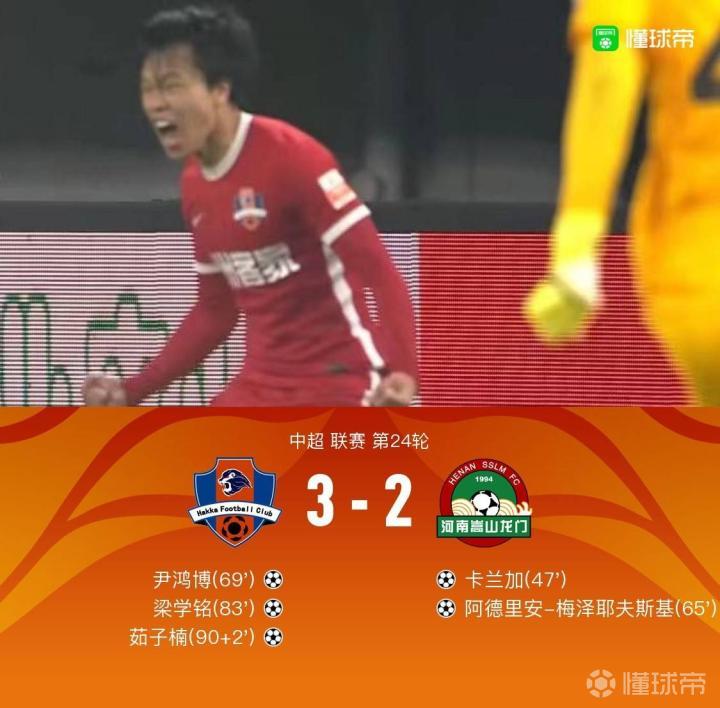 第48分钟,卡兰加接长传奔袭半场爆射破门,梅州客家0-1河南嵩山龙门!