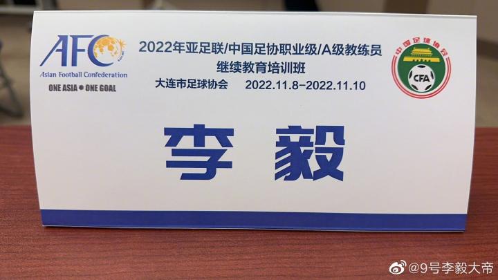 李毅参加教练继续教育培训班,晒与范志毅、杨晨合影ETChalmers @懂球帝2022-11-10 17:4711月10日,李毅在个人社交媒体晒出他参加教练培训班的照片,包括他与范志毅和杨晨的合影。李毅晒出的照片显示,他在11月8日至11月10日参加了2022年亚足联/中国足协职业级/A级教练员继续教育培训班,他的演讲PPT中右下角小组成员里还有“李铁”的名字。此外,李毅还晒出了他与另外两位中国足球名宿范志毅和杨晨的合影。他写道:“感谢中国足协的组织,三天高强度的学习收获满满!加油”展开更多