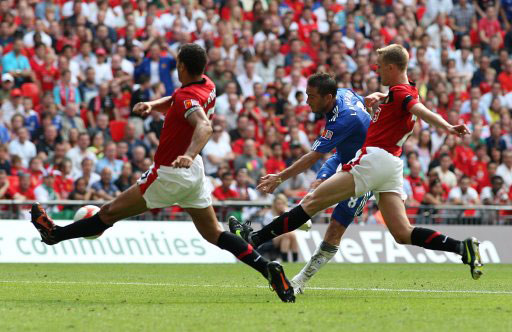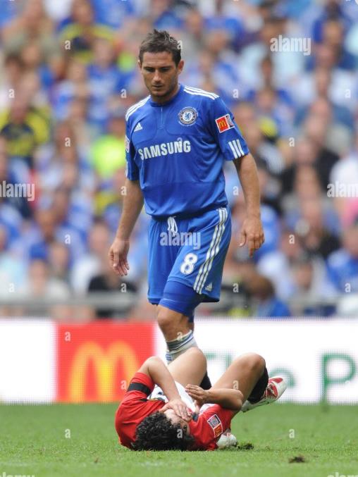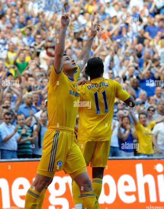 09-10赛季英超联赛的格局也同这场红蓝大战社区盾杯一样焦灼,但笑到最后还是切尔西。在安切洛蒂到来后,兰帕德在队中的担当起了跟多进攻的重任。切尔西的进攻火力也令人咂舌。他们赛季打入103球,兰帕德更是打入22球,他在阿斯顿维拉的比赛中,曾经完成大四喜。对于一名中场球员来说,确实有点不可思议。之后一轮切尔西又在关键战役中2比1击败曼联,获得关键三分。在英超最后一轮面对维甘竞技的比赛中,切尔西只要获胜就能获得冠军,立功心切的兰帕德还抢了正在和鲁尼竞争金靴的德罗巴的点球,幸好他罚进了点球,此后德罗巴也完成帽子戏法,切尔西8比0大胜,第三次获得英超冠军。随后他们又在足总杯中,击败降级球队朴茨茅斯捧杯,首次为切尔西取得联赛杯赛双冠王。