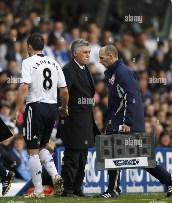 10-11赛季,本来风光无限的安切洛蒂,却再次遭遇到了和穆里尼奥的一样尴尬,那就是兰帕德的伤病,赛季初切尔西前五轮全胜比赛打入21球,可谓势如破竹,但此后兰帕德因疝气手术修养三个月,直到12月复出,此时的切尔西可以说一蹶不振,助理教练威尔金斯被炒。但兰帕德复出后,切尔西在后半赛季表现稳定,还在三月初击败曼联。兰帕德为切尔西出场24场联赛打入10球,最终帮助蓝军勉强获得联赛第二。赛季结束后,四大皆空的安切洛蒂下课。