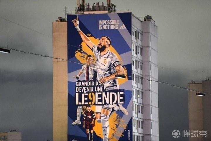 这幅壁画于本周五揭幕,在过去几周里一直用巨大防水布保护着,但从周四晚上就可以看到。阿迪达斯的一位消息人士表示,出于安全原因,本泽马本人将缺席揭幕仪式。