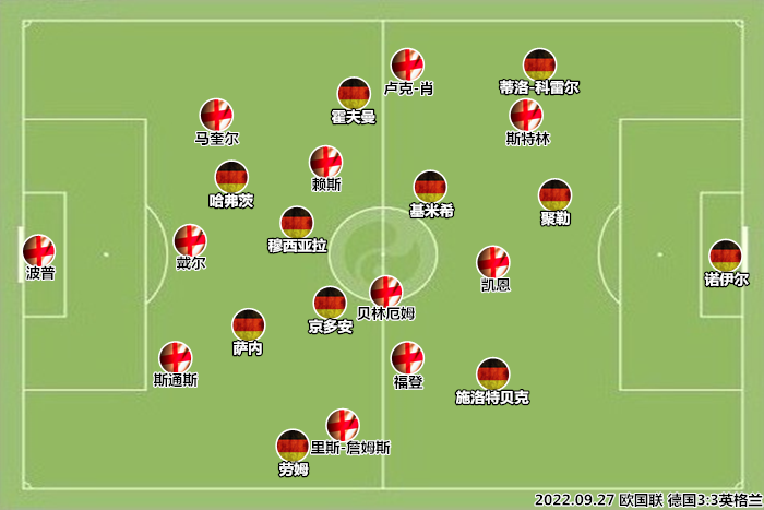(图)欧国联收官战,弗里克尝试了集合后场技术元素的尝试,3:3的比分耐人寻味——京多安、施洛特贝克和劳姆很难同时出场,蒂洛-科雷亚有望在与克洛斯特曼、霍夫曼的竞争中胜出。