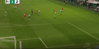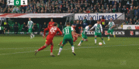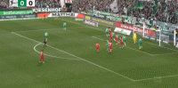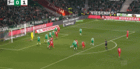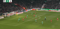 第56分钟,克里斯蒂安-格罗斯禁区左侧兜射破门!不莱梅1-1!