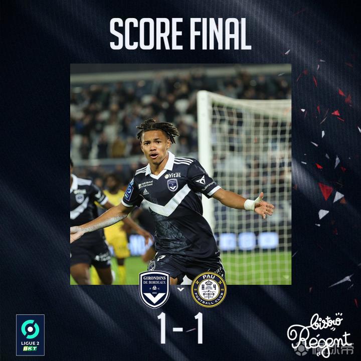 法乙战报|法乙第15轮 波尔多1:1波城,波城队...波尔多足球俱乐部 @懂球帝2022-11-14 18:01法乙战报|法乙第15轮 波尔多1:1波城,波城队在上半场比赛第23分钟率先进球。下半场比赛第87分钟,替补登场的小将皮林格尔将比分扳成1比1。展开更多