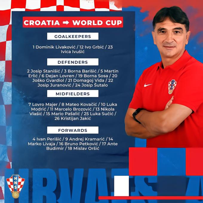 克罗地亚足协公布了世界杯期间球队的号码分配,莫德里奇身披10号球衣,科瓦契奇8号,佩里西奇4号。