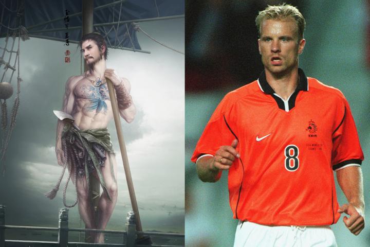 博格坎普,荷兰足球史上的传奇人物。他总是面孔冷峻,不苟言笑,气质高贵而优雅,因此获得了“冰王子”的美誉。绿茵场上的博格坎普是真正的艺术大师,曼妙的过人,犀利的直传,纤巧的射门,总是具备无限的想象力。1994年,博格坎普首次参加世界杯,不仅打满了荷兰队的所有比赛,还有3个进球入账。遗憾的是荷兰队在1/4决赛中以2-3负于最后的冠军巴西,无缘四强。1998年法国世界杯,博格坎普又打进了3个进球,最让人难忘的自然是1/4决赛中送给阿根廷人的绝杀。当时博格坎普接到弗兰克·德波尔的精准长传,用右脚脚背轻松把球卸下,随后右脚轻巧地扣过对方后卫阿亚拉,最后在面对对方门将时,博格坎普在极小的角度用右脚外脚背弹出一记弧线球,球恰到好处地越过门将,钻入球门远角。这个球也被认为是世界杯历史上最为精彩的进球之一。然而如同四年前一样,荷兰队又一次倒在了巴西人的脚下,只不过这一次是在半决赛,终结他们的是荷兰人最不擅长的点球。赛后,博格坎普入选了本届比赛的最佳阵容。