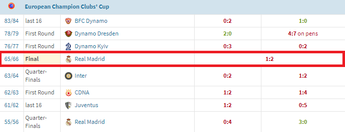 1966年5月11日的比利时博杜安国王球场座无虚席,游击队的中后卫瓦索维奇在下半场第55分钟打破僵局,帮助球队1-0取得领先,但皇马在下半场的第70-76分钟内分别由前锋阿曼西奥和中场塞雷纳各进一球,帮助皇马逆转比赛,游击队也错失队史的首个欧冠奖杯。