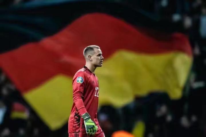 在有限的时间里,特尔施特根的表现也足够优秀。在国旗前,他的身影也是那样高大可靠。