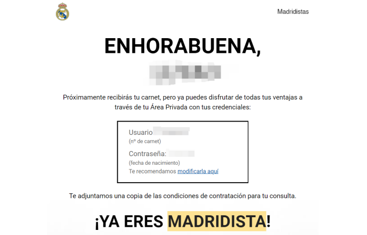 皇马会发送邮件祝贺你已经成为了MADRISTA。