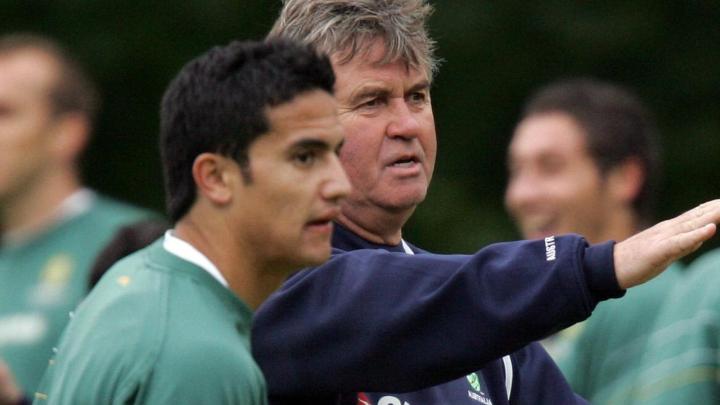 2006年执教澳大利亚的主帅希丁克,本次作为特别顾问随队出征卡塔尔。曾在上海申花效力的卡希尔,如今是澳大利亚世界杯代表团团长。