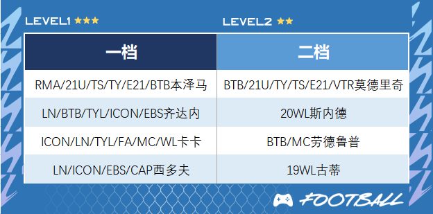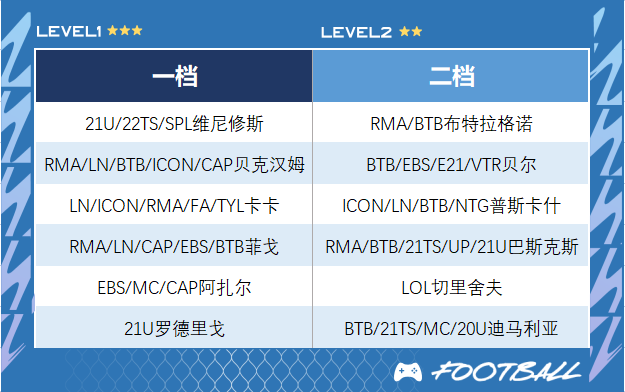 ○ 皇马套的前腰,一般首选本泽马,RMA和21U都可以,性价比来说21U好,而RMA的上限更高。