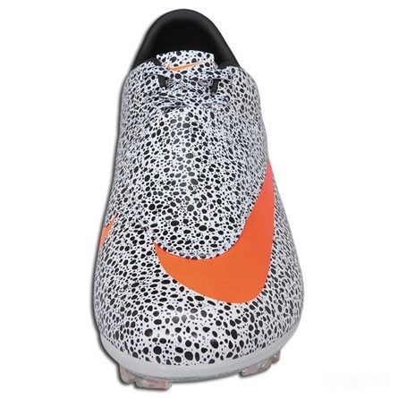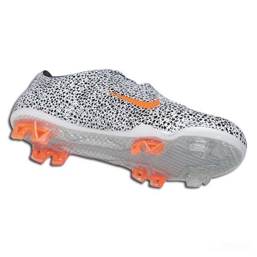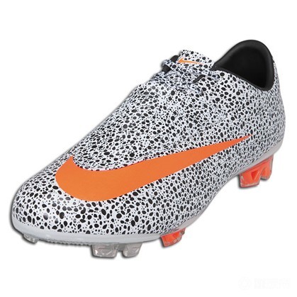 这是第一款CR7,以刺客6代为原型打造,除了Nike持续亮堂的橙色标记之外,表面布满了斑点式花纹,“密集恐惧症”患者慎入!如果走近了看,你不难体会到这款配色的新意,“雪豹”之名当之无愧。整体构想取材于自然界中最凶残的捕食者,能在寒冷的环境下依旧保持敏锐的杀气,可以说这样的配色和刺客6的搭配,有一种呼之欲出的感觉,总体可谓完美无瑕!足球场上穿戴刺客6的球员,就像雪豹那样,即使对手再强,也要靠不断的跑动来撕裂对手的防线!和C罗在场上坚忍不拔的气质特别相符!这里再来几张CR7雪豹配色的图来供大家欣赏。