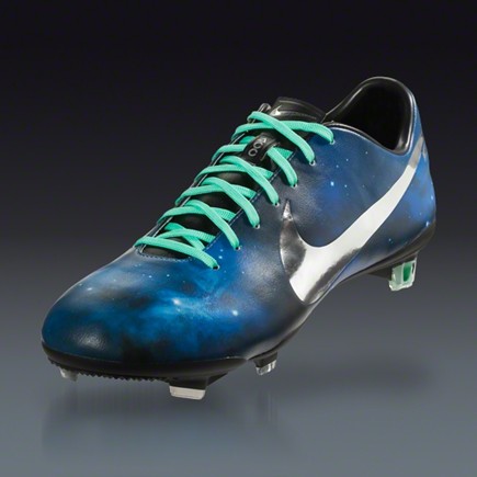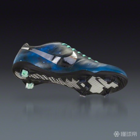 不得不说,Nike CR7这前后两代配色的“逼格”差距稍微大了一点,也可以说Nike突然发现了,所谓C罗专属就应该高大上一点。于是,前作还是寻常百姓家的“咸蛋”,这次直接跨越到了浩瀚无比的“星空”。第二代以刺客9为原型的CR7,采用了天文望远镜角度下的星空图案,主体为蓝黑色搭配,描绘了一副浩瀚的星云,再加上白色的繁星作为点缀,外观十分大气,有一种气吞山河的气势!气质上,也和C罗在球场上霸气的表现,十分相符。更是由于很少有人会对这种色彩说“不”,因此“星空”配色CR7可以说是卖的最快的一代,其衍生产品包括护腿板在内,也同样热卖!不必多说,请大家自己来体会这幅波澜壮阔的“星空”。