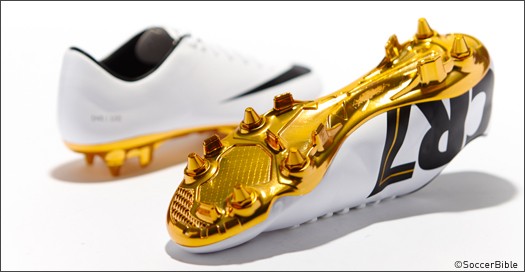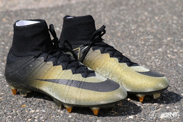刺客10代期间,不愧是CR7系列的巅峰期,各种配色层出不穷。要说前面的几大配色,稍微有点小钱的朋友都可以买得起,但是上图两个配色的CR7就不是钱的问题了,也就是传说中的限量版!这两大配色都以金色为主色调,而且纪念意义也非常相似,都是表彰C罗在过去一段时间内的出色表现。上层图片的CR7球鞋,其配色名字为“324K金色”,而下面这张图片的CR7逼格更高,其名字为“稀有金色”。尽管说,Nike的捞金意图相当明显,可是这两大限量版的配色却是尽显奢华,非常惹人喜爱!再加上C罗的超高人气,以及刺客10代的即将落幕,这两大金色限量版CR7,一经发售就立刻引来哄抢,现在非常不好找的东西了。再附上几张图,供大家饱饱眼福!