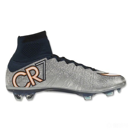 以刺客10代为原型的CR7专属有很多配色,但是你要问我哪款最容易在球场上吸引人眼球,我会毫不犹豫地回答是这款“闪银”配色。这款CR7可以说是设计如其名,真的全身除了Nike标记以外,全都是亮瞎你的闪银色,足以让你成为球场上最耀眼的球星。可是如果要究其根本,其实说白了就是将之前的陨石配色CR7的全身,全部换成了整张耀眼的银色,球鞋整体乃至性能设计上并无任何差异,而且这两款配色的CR7发布时间相差无几,外观配色设计上的改变也非常简单,Nike捞金的意图可谓十分明显。不过就算小编我这样的分析,还是抵挡不了C罗忠实拥趸的热情的,现在和C罗真实上脚非常像的高帮版本:CR7闪银,也已经是一双难觅,仅有少量普通顶级版本尚存,想要的人请尽快下手。为了饱饱大家的眼福,这里再放几张效果图。