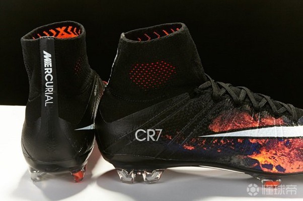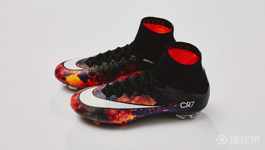 转瞬间,就来到了大家可能再熟悉不过的CR7专属配色了,就是上图中的“熔岩”配色,而且也是以Nike刺客10代作为原型制成的。发布时间为“陨石”和“闪银”之后,代表着Nike CR7系列全新篇章的伊始。总的来说,“熔岩”配色CR7的视觉冲击力非常强,你很难不成为球场上的焦点。如果仔细观察球鞋的鞋面,你会发现这“熔岩”呈现喷射而出的态势,寓意着球场上无限奔跑的热情。再加上鞋面色彩搭配的层次感非常鲜明,亮丽的熔岩色被背景深色完全衬托,即便远观,也可以看出表面呼之欲出的“熔岩”。可以看出来Nike在2015到2016年间,针对C罗的商业化价值进行了大幅度的开发。不过这里也同之前一样,C罗上脚的“熔岩”CR7都是高帮的,而且市售版和C罗上脚的差距并不大,但是因为高帮“熔岩”CR7卖的比较火,所以现在在市场上仅存的基本都是普通低帮顶级。与之前一样,再多上几张“熔岩”配色CR7供大家回味。