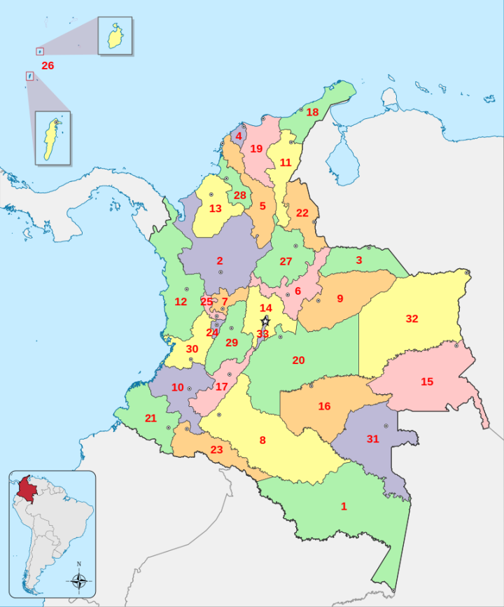 南美国家中,哥伦比亚是唯一地跨两大洲的国家。该国的国土大部分地处南美洲。.圣安德列斯-普罗维登西亚省是该国唯一在中北美地区的省份。
