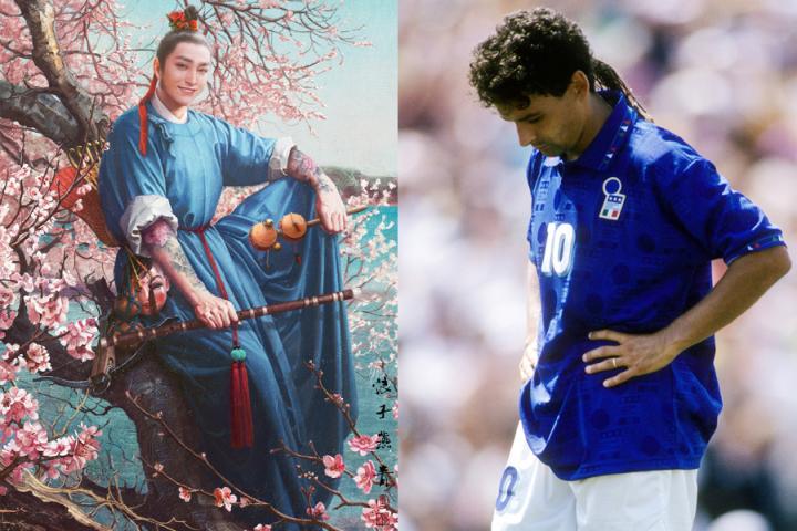 巴乔,意大利足球史上最伟大的球员之一。他是世界杯史上的悲情人物,却也是人们心中永远的忧郁王子。1990年意大利世界杯,东道主在小组赛中遭遇捷克斯洛伐克队,巴乔在比赛中打入一记经典的单骑闯关,不仅收获了世界杯首粒进球,还向世人展示了他非凡的球技。三四名决赛中,机敏的巴乔让英格兰门将尝到了苦头,他从大意的希尔顿手里“偷”得皮球并将球打进,帮助球队以2:1击败对手,他的首次世界杯之旅收获季军。1994年美国世界杯,留着马尾辫的巴乔迎来了职业生涯的巅峰,他在淘汰赛阶段场场进球,顺利将意大利队带进决赛。他们决赛的对手是罗马里奥领衔的巴西队,本场比赛也被称作是巴乔和独狼的对决。然而双方在120分钟之内均无建树,世界杯将第一次通过点球大战决出冠军。结果第五个出场的巴乔将球踢出了横梁,比赛随即结束。巴西人欢庆胜利,球场上只留下巴乔凄凉而又落寞的背影。那一刻无数球迷为之心痛,从此他也得到了“忧郁王子”的雅号。1998年法国世界杯1/4决赛,意大利队又一次迎来了点球大战。这次巴乔第一个走向罚球点,并顺利的将球打进。然而最终意大利队还是输给了东道主,巴乔带着无限遗憾告别世界杯。