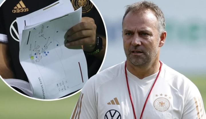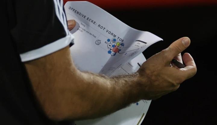 《图片报》报道了德国队的训练,在训练中可以看到德国队主帅弗里克手里拿着好几页写有球队战术的纸张。其中备战环节,弗里克很重视定位球训练,德国队的定位球教练Buttgereit一直在布置训练。他跟球员们一起练习角球和定位球,尝试在定位球时不同的变化。