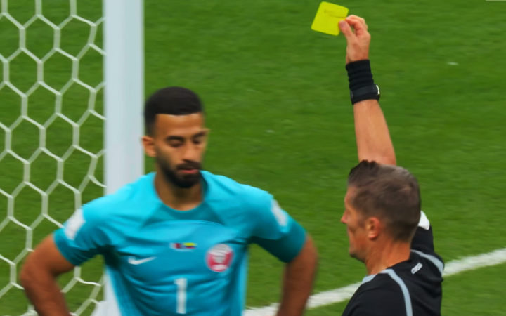 此外,第14分钟,卡塔尔守门员将厄瓜多尔队长恩纳·瓦伦西亚放倒,当值主裁奥萨托判罚“黄点套餐”,卡塔尔世界杯首例进球就此诞生。门将犯规时,瓦伦西亚已形成了明显的进球得分机会,过掉门将就会面对空门,所以卡塔尔门将这次犯规属于“DOGSO”(破坏进球或明显进球得分机会)。由于门将的犯规动作是为了将球扑出,所以属于“冲球去”的“DOGSO”,“黄点套餐”判罚无误。