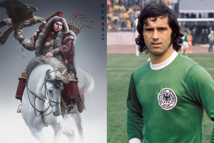 盖德·穆勒,世界杯史上最伟大的射手之一。他拥有近乎毁灭性的攻击力,因此球迷们送给他“轰炸机”的绰号。1970年墨西哥世界杯,穆勒的轰炸能力得到了淋漓尽致的展现。首战2-1击败摩洛哥队,他在第78分钟为西德队锁定胜局;接下来对阵保加利亚队和秘鲁队,他又连续两场比赛上演帽子戏法,这是继匈牙利人柯奇士和法国人方丹之后,第三位在一届比赛中两次上演帽子戏法的球员;1/4决赛面对宿敌英格兰队,他在加时赛第108分钟的进球把西德队带进了四强;虽然他们在半决赛中以3-4输给了意大利队,但轰炸机仍有2球入账。最终,穆勒以10个进球摘得金靴将。1974年德国世界杯,虽然轰炸机在本土只攻入4球,但他的最后一个进球却价值千金:决赛一役,克鲁伊夫领衔的荷兰队开场仅1分钟就获得点球,内斯肯斯主罚命中;24分钟后,西德队还以颜色,布莱特纳同样打进点球,将比分扳为1-1平;第43分钟,穆勒在对方四名球员的夹击下强行转身射门,皮球应声入网。最终比分定格在了2-1上,西德队勇夺金杯。而轰炸机则以14球的总进球超越法国传奇射手方丹,成为在世界杯决赛阶段进球最多的人。这一纪录直到32年后才被“外星人”罗纳尔多打破。