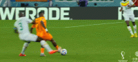 面对身体素质出众的塞内加尔球员,荷兰队过往依靠边中卫带球向前的推进套路难以施展,后场出球时的失误率激增。面对格耶和库亚特等人的防守,弗兰基-德容展现出了名将风采。不断通过跑动寻找空间,接球前已经完成充分观察,转身后有空间就加速带球突进,弗兰基-德容的带球奔袭就是荷兰进攻的提速键,这在布林德和邓弗里斯遭到限制时显得尤为重要。