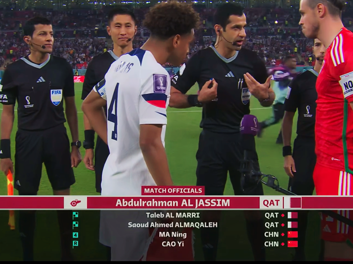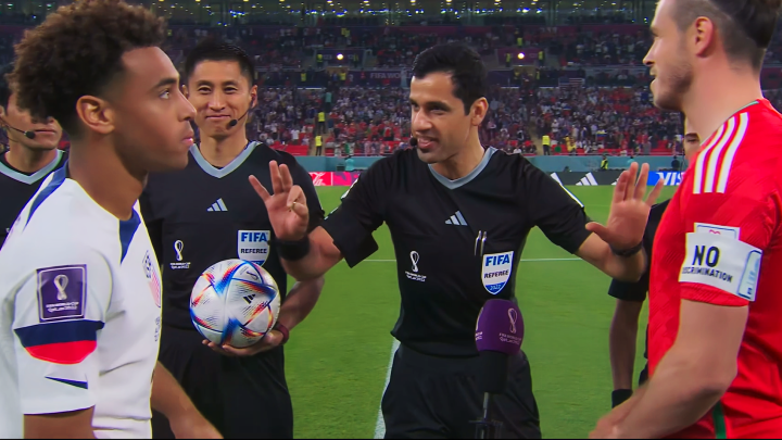 开场仅十分半钟的时间,美国队2号德斯特便率先“上头”,就在第四官员马宁的眼前鲁莽地将对手铲翻在地,反应迅速的马宁立即与贾西姆交流(右手按着别在身体左侧的设备),随后贾西姆向德斯特出示了黄牌。