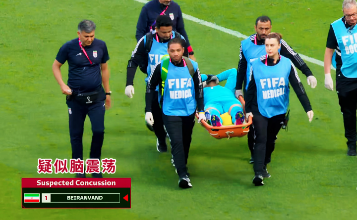 此外,这场比赛中还有一个历史性时刻——伊朗队的六次换人。由于门将贝兰万德上半场头部受伤被换下场,伊朗成为了世界杯史上第一支获得“脑震荡额外换人名额”的球队。
