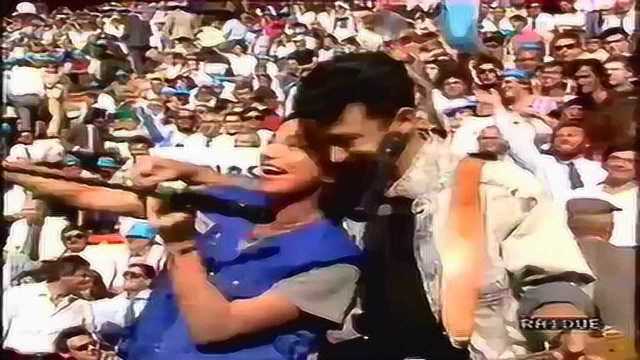 当电吉他的声音弹奏出,让人记忆一下子回到了1990年那个夏天。这是我看的第一届世界杯,开幕式让人印象极为深刻。乔吉奥和吉娜向我们展示了华丽摇滚乐和足球美好的结合,两个人在世界杯的舞台上如此地潇洒自如,放声高歌激情释放,一边唱一边抱还一边亲,在我当时幼小的心灵里埋下了永不磨灭的烙印。这哪是世界杯主题曲,这分明是一首足球界的《国际歌》!这位长得像卡尼吉亚的吉娜姐姐,穿着一件蓝色旅游马甲,时而摇头晃脑,时而握紧拳头,嘶哑的嗓音实在太迷人,感染力超群,怪不得那年的世界杯卡尼吉亚在1/8决赛绝杀了巴西。后面的开幕式走秀也是让人大开眼界,那些高挑的模特穿着代表各个国家的前卫时装一个个走出来,把那时候还上学穿着线衫线裤和回力跑鞋的我惊呆了,第一次知道什么是真正的时尚,第一次知道我们和别人差距怎么这么大。这首主题曲的英语版叫《To Be Number One》,中文版是谭校长的《理想与和平》,都是广泛传唱的。