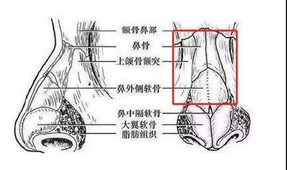 鼻骨结构一般可分为鼻子的软组织、侧鼻软骨与鼻翼软骨、鼻骨以及鼻下部分。上三分之一是硬骨(鼻骨),下三分之二是软骨。软骨,顾名思义,就是通过软的特性尽可能地减少伤害、减少痛苦的,试想一下,你身体其他部位的硬骨被撞一下,是不是很酸爽?