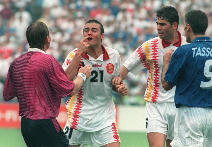 不过,伤害鼻子是需要付出极大代价的,比如恩里克球员时代在1994年世界杯1/4决赛面对意大利,首发出战的恩里克被意大利后卫塔索蒂肘击,导致鼻梁骨折,当场满脸鲜血,后者最终被国际足联禁赛8场。